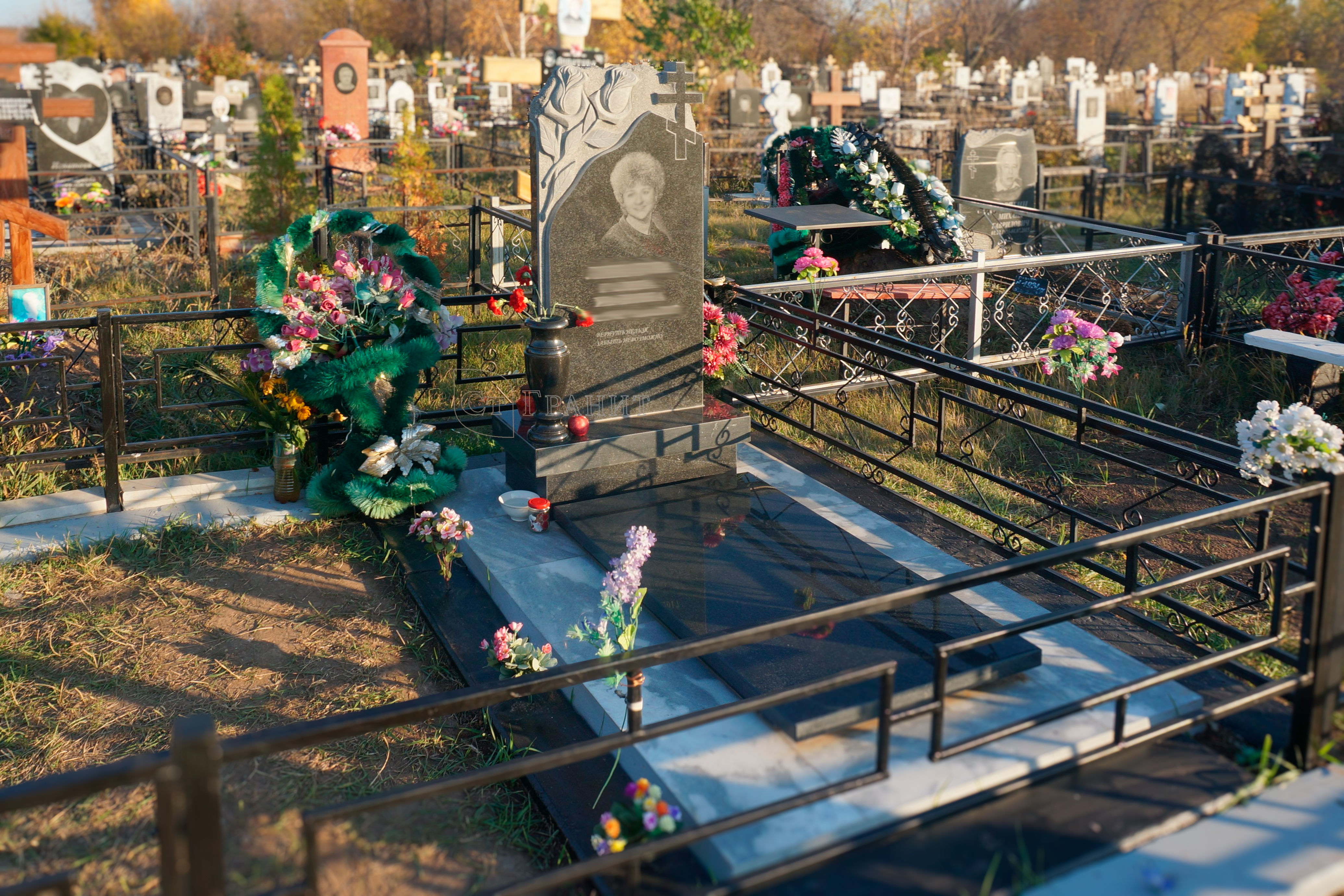 Дополнительно оплачиваются: гравировка (портрет, ФИО+даты), оградка, подготовка комплекта, установочные работы, доставка